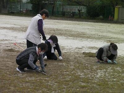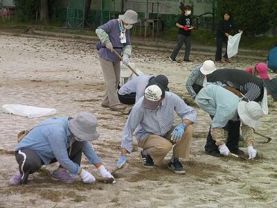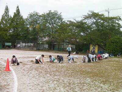 10月21日水曜日です。今日も一ノ割の地域の方々に、校庭の草取りを行っていただきました。皆様のお力添えに深く感謝を申し上げます。おかげさまでトラックやバレーボールコート周辺がとてもきれいになりました。