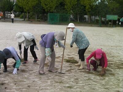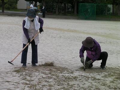 おとといの10月13日に引き続いて、今日の午前中も地域の方々にお世話になりました。おかげさまで校庭のトラック周辺がとてもきれいになりました。ありがとうございます。