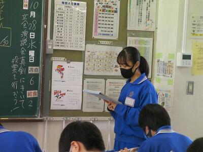 今朝は生徒会役員任命式を行いました。放送室の様子を紹介します。旧生徒会本部役員の皆さん、大変ごくろうさまでした。45代目となる新しい本部役員には、これまでの伝統を引き継ぎつつ、自分たちなりの考えや工夫をもって取り組んでほしいと思います。