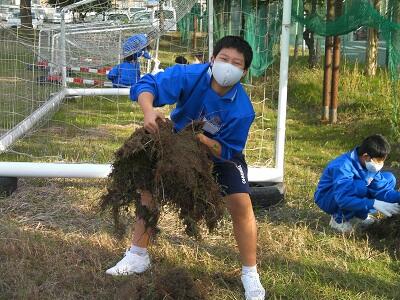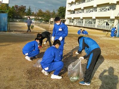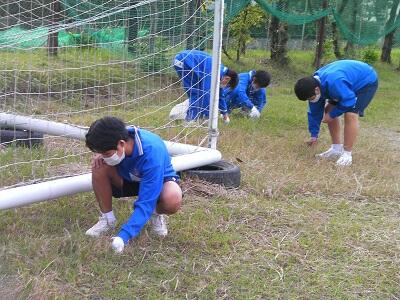 10月21日水曜日です。今日も一ノ割の地域の方々に、校庭の草取りを行っていただきました。皆様のお力添えに深く感謝を申し上げます。おかげさまでトラックやバレーボールコート周辺がとてもきれいになりました。