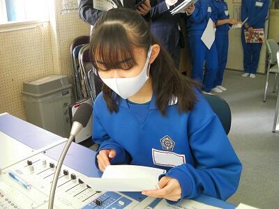 今朝は生徒会役員任命式を行いました。放送室の様子を紹介します。旧生徒会本部役員の皆さん、大変ごくろうさまでした。45代目となる新しい本部役員には、これまでの伝統を引き継ぎつつ、自分たちなりの考えや工夫をもって取り組んでほしいと思います。