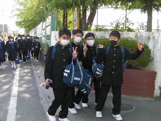 本校の登校時に教頭先生がカメラを向けると笑顔と同時にピースをする生徒がたくさんいます。