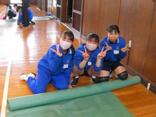 過日、市内東中学校の体育館において県大会をかけた試合を東中・緑中の合同チームと行いました。
