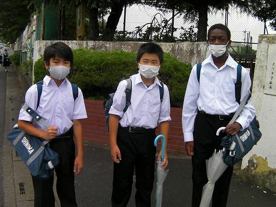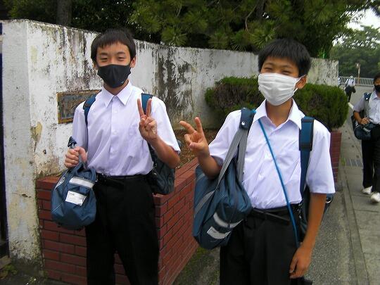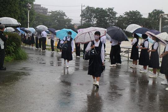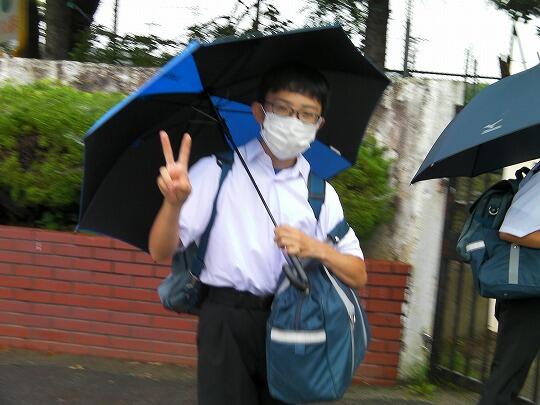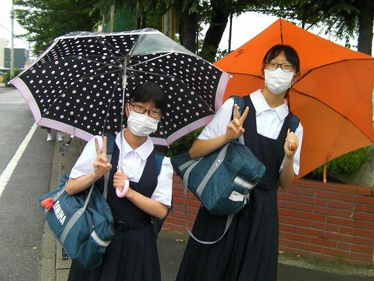 本日はぐずついた天候ではっきりしない天気の朝でした。傘をさしている生徒と傘を差さないでいる生徒とまちまちでした。