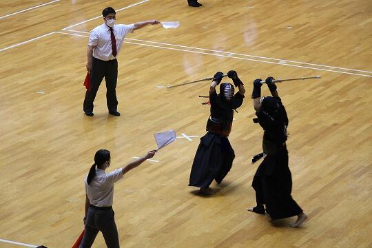 本校は、第1シードなので2回戦が初戦でした。準々決勝まで危なげない勝ち方で勝ち上がりました。ところが、準決勝は、副将戦を前にして、1-2とリードされ、後がなくなるピンチになりました。しかし、後がない中でも本校の副将が踏ん張り、一本返して、大将戦へつなぎました。大将戦はとったほうが勝ちという手に汗握る戦いで、延長でも決着がつかず、代表戦にもつれ込みました。両校ともに大将が代表戦に臨みました。代表戦も延長にもつれ込みましたが、本校の大将が一本とり激戦の準決勝を制し決勝進出しました。