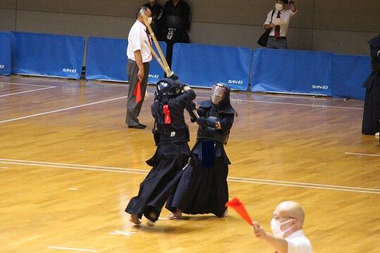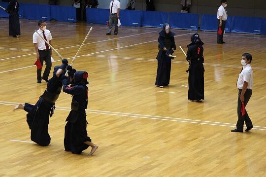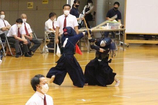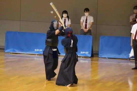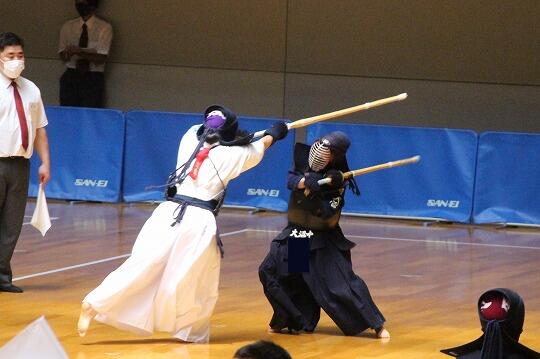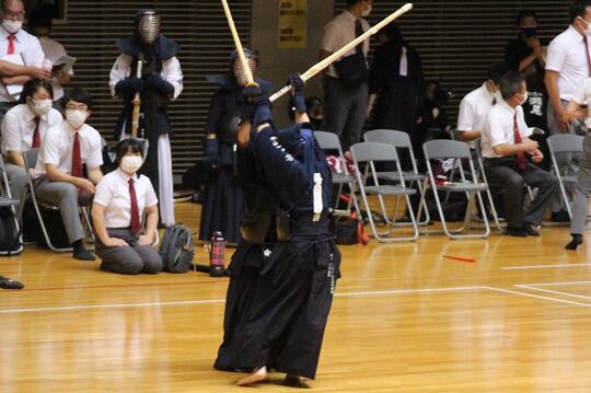 本校は、第1シードなので2回戦が初戦でした。準々決勝まで危なげない勝ち方で勝ち上がりました。ところが、準決勝は、副将戦を前にして、1-2とリードされ、後がなくなるピンチになりました。しかし、後がない中でも本校の副将が踏ん張り、一本返して、大将戦へつなぎました。大将戦はとったほうが勝ちという手に汗握る戦いで、延長でも決着がつかず、代表戦にもつれ込みました。両校ともに大将が代表戦に臨みました。代表戦も延長にもつれ込みましたが、本校の大将が一本とり激戦の準決勝を制し決勝進出しました。