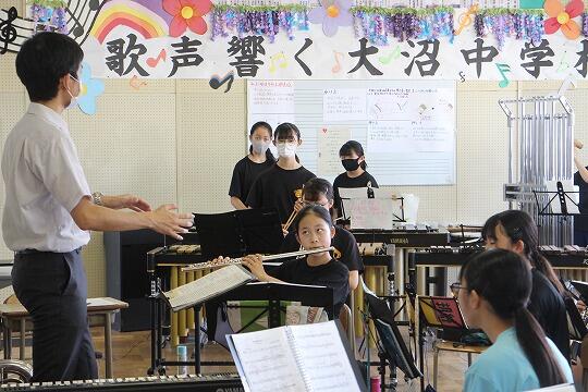 そのような中、ウインドオーケストラ部が8月1日(日)に羽生市産業文化ホールで行われる埼玉県吹奏楽コンクールに向けて演奏曲をより美しく仕上げるために顧問の先生の指導を真剣な眼差しで受けて取り組んでいます。