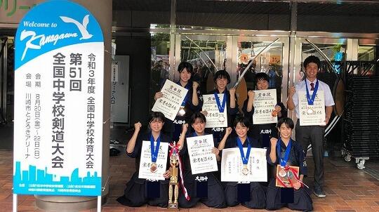 準決勝で兵庫県代表の加古川中学校に惜しくも敗れて、決勝には駒を進めることはできませんでした。女子剣道部のメンバーは決勝進出を逃して、悔しい思いをしているかもしれませんが、全国大会3位はとても立派な成績です。胸を張って大沼中に戻ってきてください。待っています。