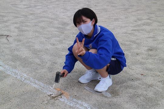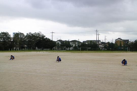 分散登校で、授業を実施している中ですが、体育の授業で行われる「ハードル走」のハードルを置く目印のくい打ちを率先して手伝ってくれた3年生がいました。ソーシャルディスタンスも万全です。