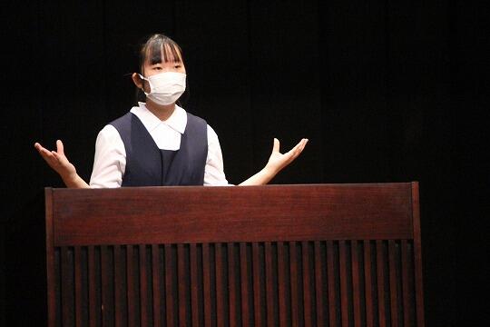 という題名で発表しました。それぞれの生徒は日頃の練習の成果を発揮し、堂々と英語でしっかりと自分の主張をスピーチすることができました。
