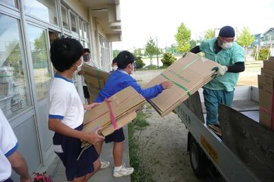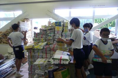 本日放課後、資源回収が行われました。始めPTAの方々がお手伝いしてくださり、帰りの会後は、野球部と男子テニス部が手伝ってくれました。ありがとうございました。トラックいっぱいになりました。ご協力に感謝します。
