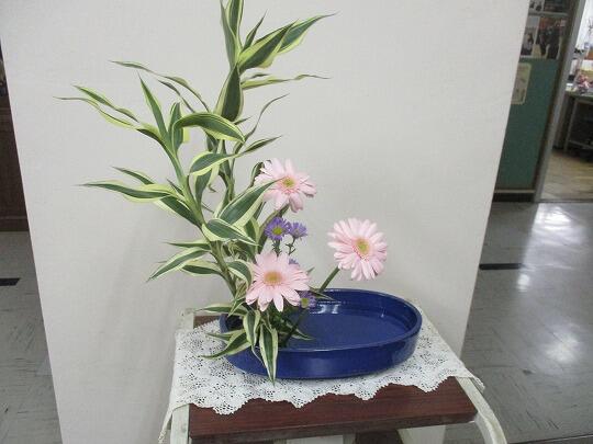 本日からしばらくの間、玄関には華道部の生徒が活けたお花でお客様を出迎えています。