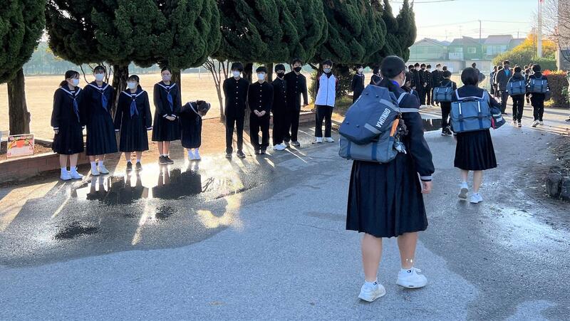 本日、1・2年生の学級委員が、朝のあいさつ運動をやっていました。あいさつの飛び交う学校(4つの合言葉)を目指しての活動だそうです。