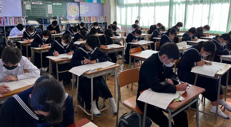 本日、1・2年生は、期末テスト2日目を迎えました。今日は1年生の様子です。1年生も必死に取り組んでいました。