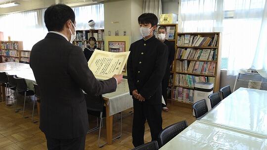 式辞では「節目を考える」という内容で、『沼中生達には、若竹のように、自分自身を丈夫にし、しなやかに、さらに成長させるために、この節目を大切にしてほしいと思っています。いままでの自分自身を見つめ直して、良かったことはさらに伸ばせるよう、悔いの残ったところは直すよう挑戦するために、この『節目』で「今年の目標」を掲げてみましょう。』というメッセージを送りました。