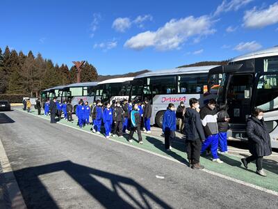 1年生が、本日1月29日(日)から31日(火)まで長野県上田市の菅平高原スノーリゾートにおけるスキー教室に出発しました。『雪磋琢磨~雪も溶かす熱い友情~』のスローガンのもと健康に気をつけて怪我や病気せず無事に充実した3日間を過ごしてきてください。