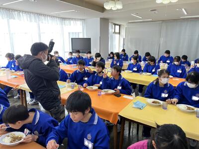 お昼はみんな大好きカレーライスでした。おかわりをする人が続出でした。外は雪が降ってきました。
