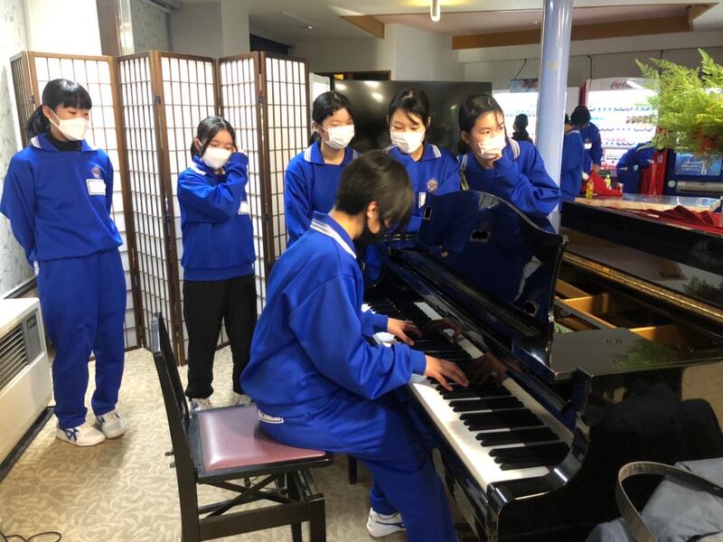 今日の夕食もバイキングでした。昨日、大人気のソフトクリームも増量してくれ、みんな大満足の最後の夕食でした。自由時間にはピアノ演奏会が始まり、心地良いひと時を過ごしました。