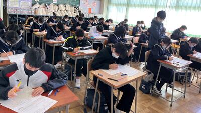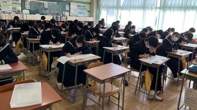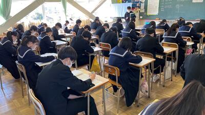 本日から1・2年生は期末テスト。3年生は卒業式練習が始まりました。