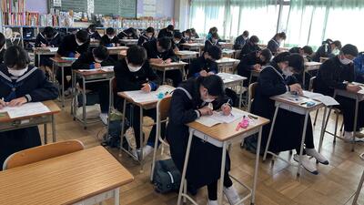 今日は、埼玉県公立高校入試・学力検査の日です。今までの努力が実を結ぶことを願っています。写真は、昨日、在校生から3年生に贈られた千羽鶴です。みんなで応援しています。頑張ってください!