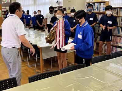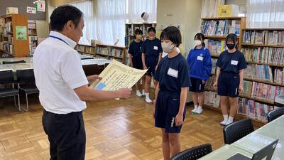 7月15日(土)に、春日部市教育センターにおいて「令和5年度春日部市教育委員会表彰」の表彰式が行われました。特別表彰に、「第66回JA共済全国小・中学生書道コンクール文部科学大臣賞」を受賞した生徒が表彰されました。他に功績が顕著なものなどで、本校から5名の生徒が表彰されました。