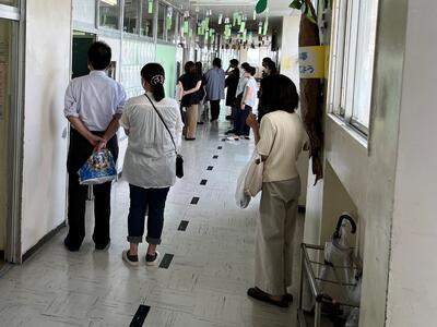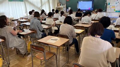 3年生は、体育館で親子一緒に進路説明会を聞く予定でしたが、猛暑のため、急遽別々の教室でオンラインによる説明会になりました。3年生の保護者の方々もたくさん参会していただきありがとうございました。