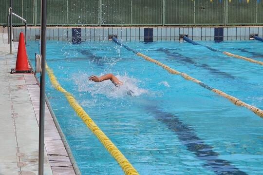 本日、春日部中学校のプールにて新人体育大会兼県民総合スポーツ大会の市内予選水泳競技(競泳の部)が開催されました。2年生男子2名と2年生女子1名、1年生女子1名が臨みました。