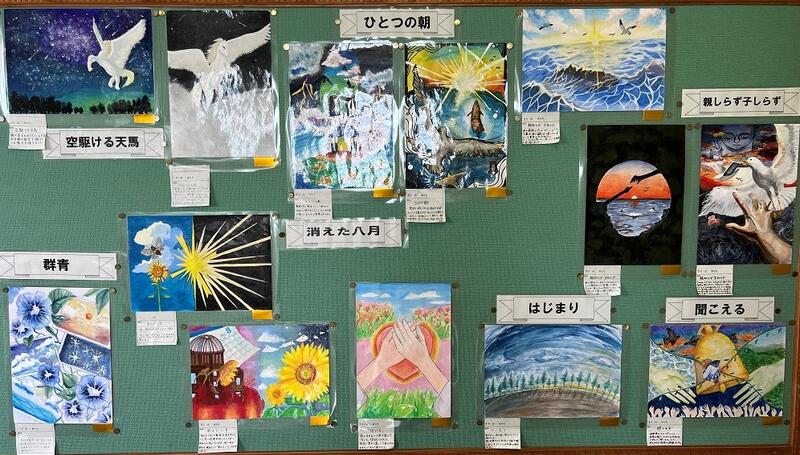 今月、28日(土)の合唱祭に向けて、練習も熱が入っていますが、曲のイメージを絵にして、気持ちを込めて歌う取組もしています。