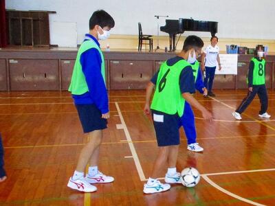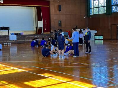 本日は、本校で近隣の中学校と交流会が行われました。自己紹介、リトミックやフットサルを他の学校の生徒と一緒に行いました。楽しく交流をしていました。