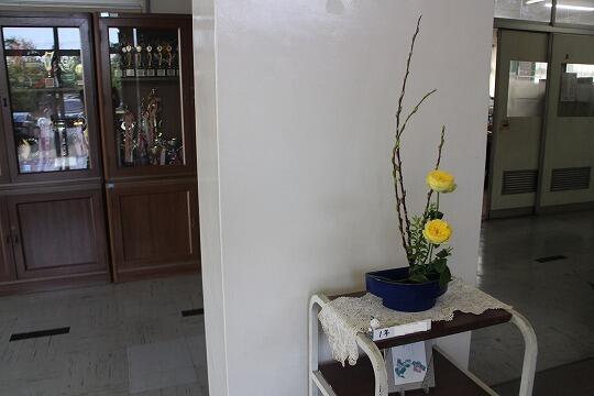 昨日の夕方から、華道部の活けたお花でお客様をお迎えしています。