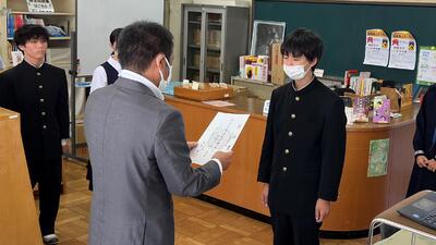本日、中央公民館にて、春日部市民の日記念「令和5年度春日部市表彰式」が行われ、本校の2年生が表彰されました。市長さんから表彰状をいただきました。