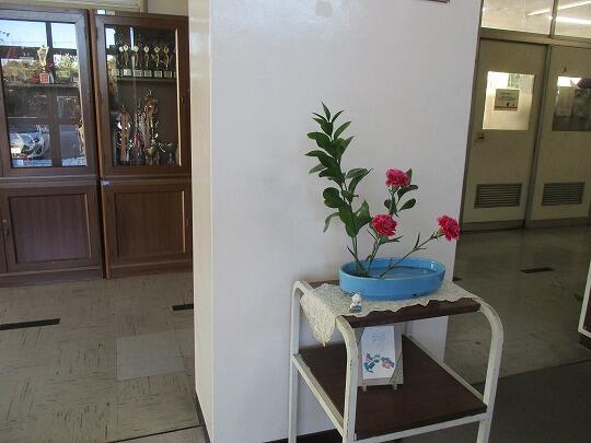 昨日から、華道部の生徒の活けたお花でお客様をお迎えしています。