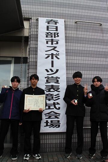 他にも、陸上(県大会男子3000m優勝)、女子剣道部(県大会優勝)、自転車競技(全日本選手権優勝)、女子中学生野球(全国大会3位)のメンバーも表彰対象でしたが、残念ながら欠席でした。