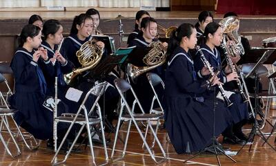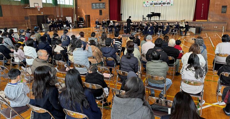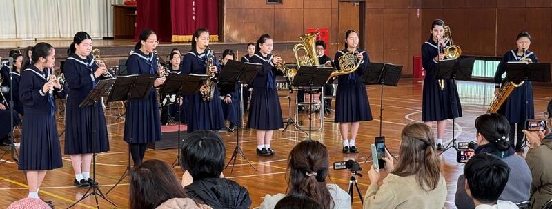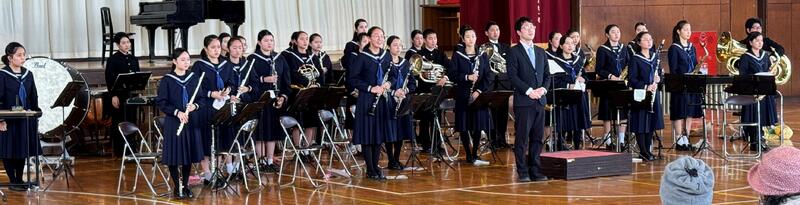本日、ウインドオーケストラ部による第17回定期演奏会が本校体育館で行われました。客席は100席準備してありましたが、立ち見が出るほどたくさんの観客がきてくれました。ありがとうございました。クラッシックから歌謡曲、ソロやアンサンブル、合唱や寸劇まで幅広く、笑いあり感動ありであっという間の90分間でした。また、引退した3年生も加わり、素晴らしい演奏会でした。