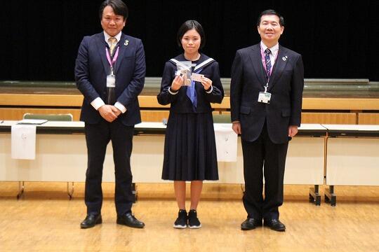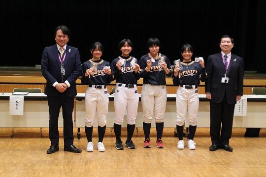 本校からは、伊勢神宮奉納書道展で総裁賞に輝いた2年生1名と全国女子中学校硬式野球選手権大会で3位に輝いた1年生メンバー3人が出席しました。