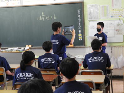 始業式では、代表生徒の発表、校長の式辞がありました。