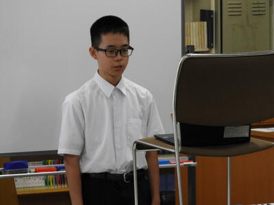 本日、埼玉県中学校英語弁論大会がさいたま市の浦和コミュニティセンターにて行われ、3年生一名が臨みました。