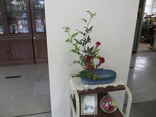 昨日から華道部の生徒がいけた活け花でお客様をお迎えしています。