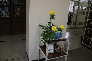 昨日から華道部の生徒の活けた活け花でお客様をお迎えしています。