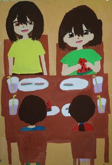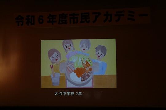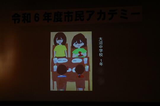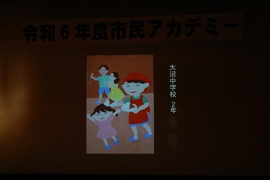 会場には本校生徒の描いた人権ポスターも飾られ、ステージにも投影され紹介されました。