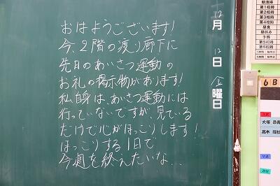 先日の朝のあいさつ運動のお礼のメッセージを受け取りました