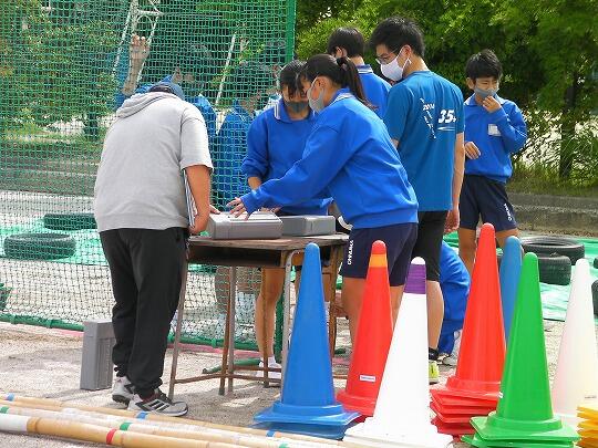 大会役員の仕事の役割もしっかり取り組む沼中陸上競技部の部員です。