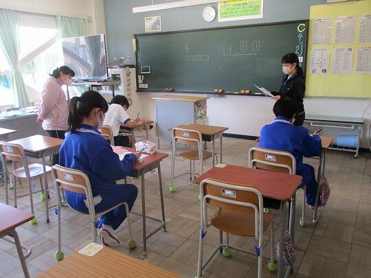 3組は国語の授業でしたが、歯科検診を受けていました。検診を受ける前にしっかりとアルコール消毒をして保健室内に入っていきます。