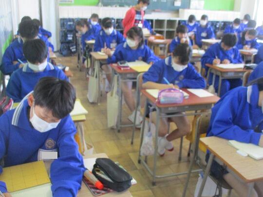 2組は理科の授業でしたが、歯科検診にあたっており、歯科検診の終わった生徒は静かに与えられた課題に取り組んでいました。