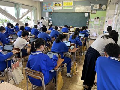 本日、埼玉県学力・学習状況調査のCBT化に向けた接続確認調査がありました。全校一斉に同じ時間に行いましたが、特に大きな問題なく、生徒たちもしっかり取り組んでいました。