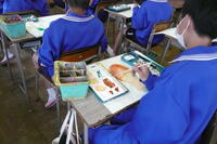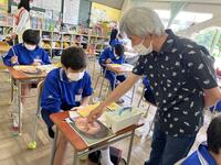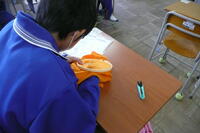 今日は、家庭科では「刺し子」、美術では「自画像」を作製していました。