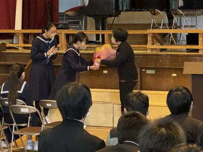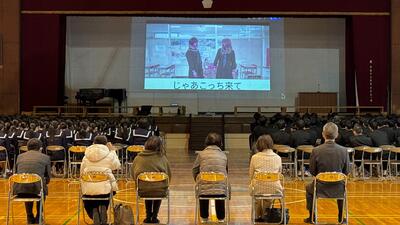 本日、第5回学校運営協議会が開かれ、3年生を送る会を参観しました。今年度も在校生たちはビデオ映像からのメッセージでしたが、思いが伝わり、3年生たちも感動していました。寒い中の参観ありがとうございました。また今まで何度も足をお運びいただきありがとうございました。