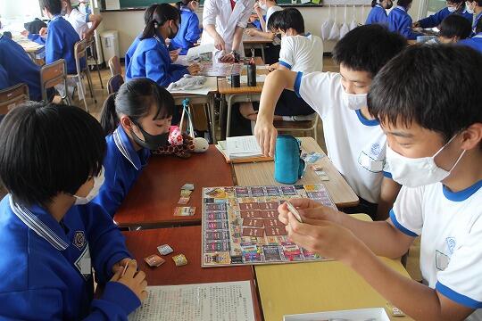 本日2年生のあるクラスで春日部の歴史をゲームをしながら学ぶ授業をしていました。