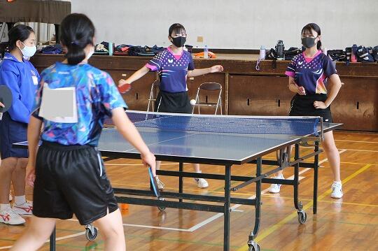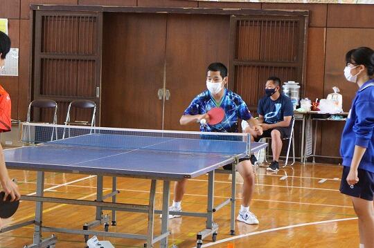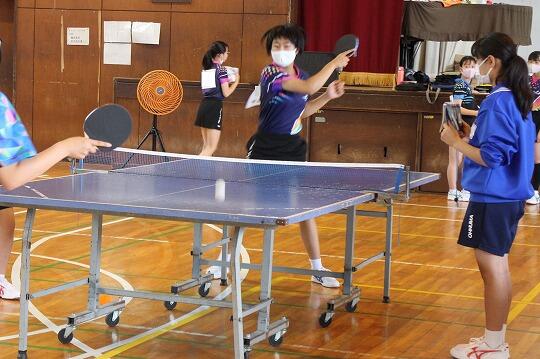 午後の体育館では卓球部が春日部南中を招いて練習試合を行っていました。
