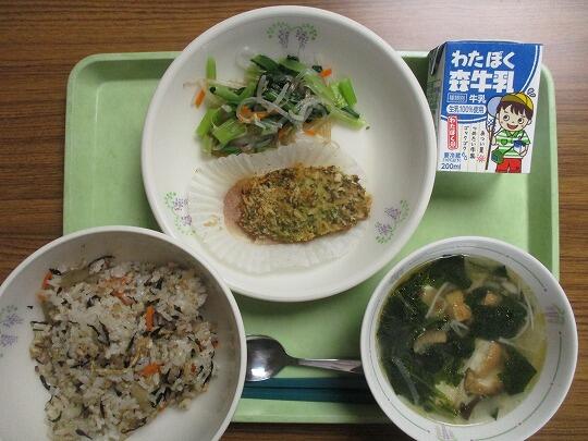 中華風ピリ辛ご飯、牛乳、春雨サラダ、中華スープでした。